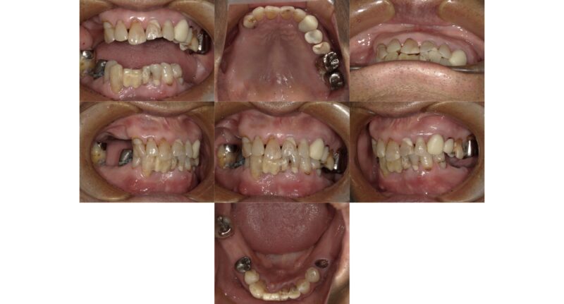まず仮の義歯を装着し、虫歯治療、根管治療を行い、仮歯で全体的に噛み合わせを整えた。